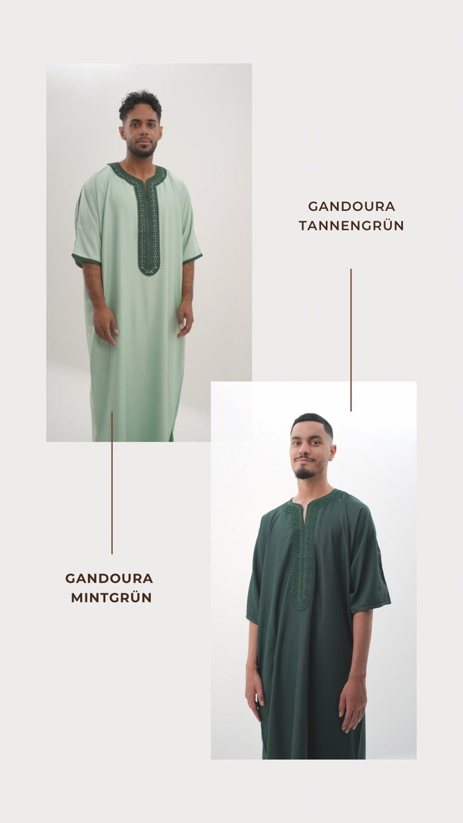 Spare mit unserem beliebtesten Set! Zwei hochwertige Gandouras in den Farben mintgrün und tannengrün zum Vorteilspreis. Perfekt für jeden Anlass.