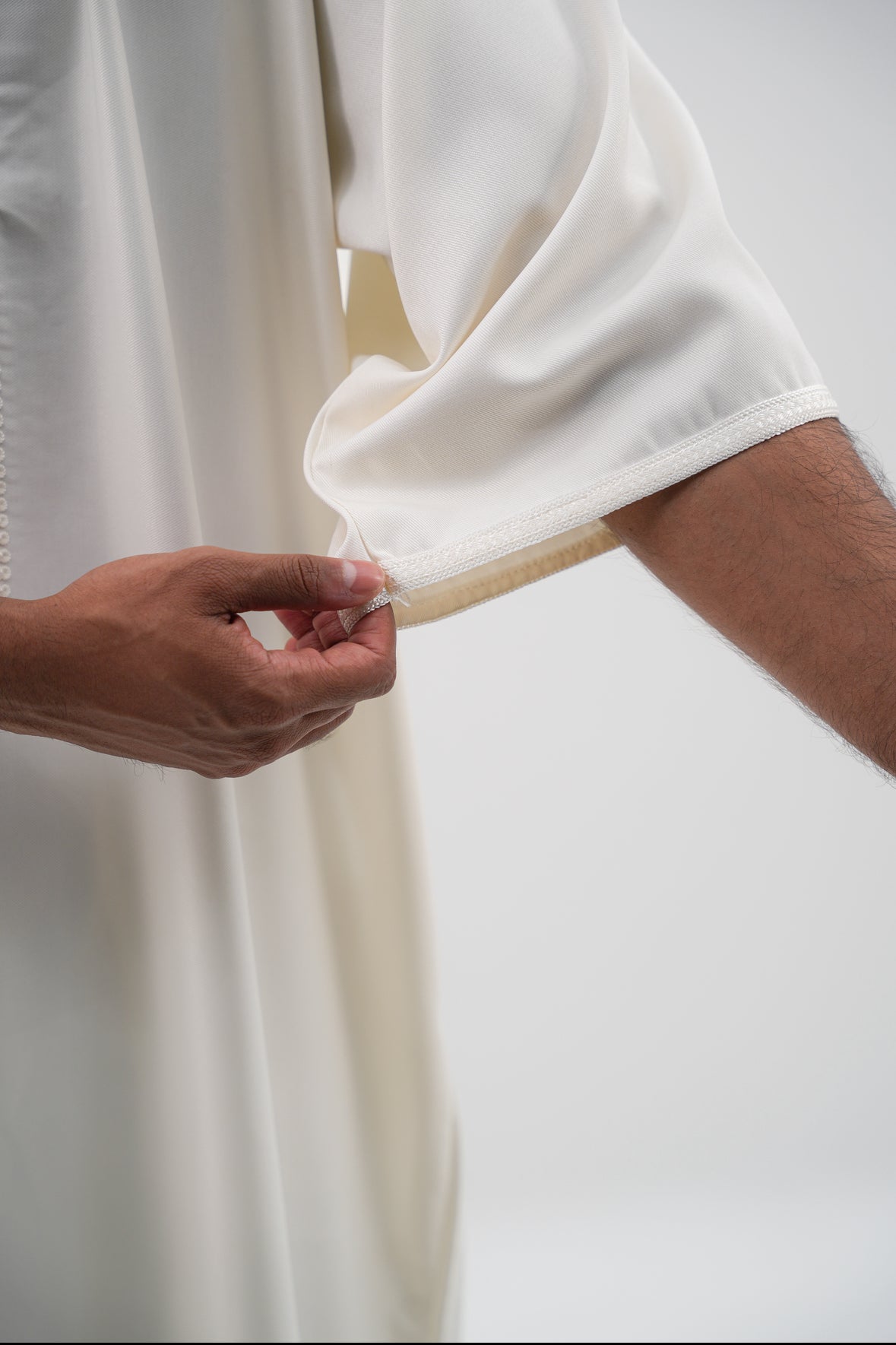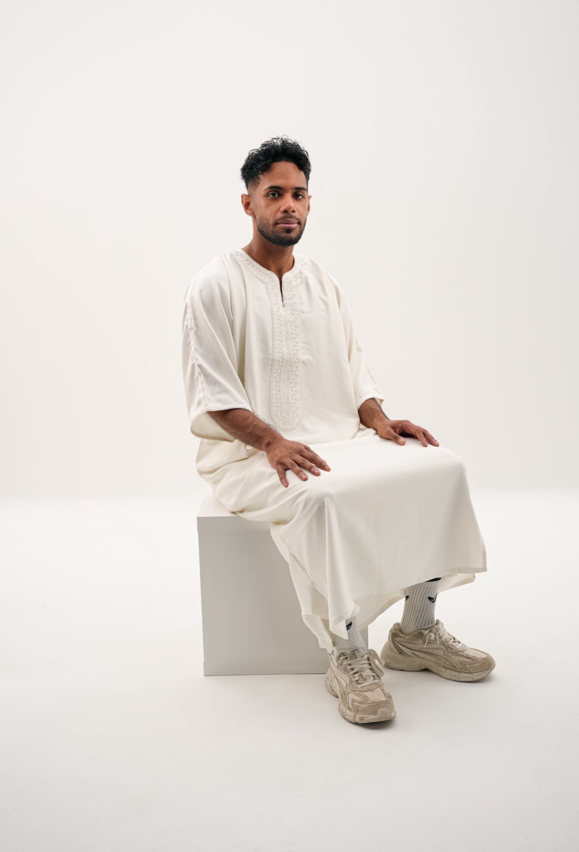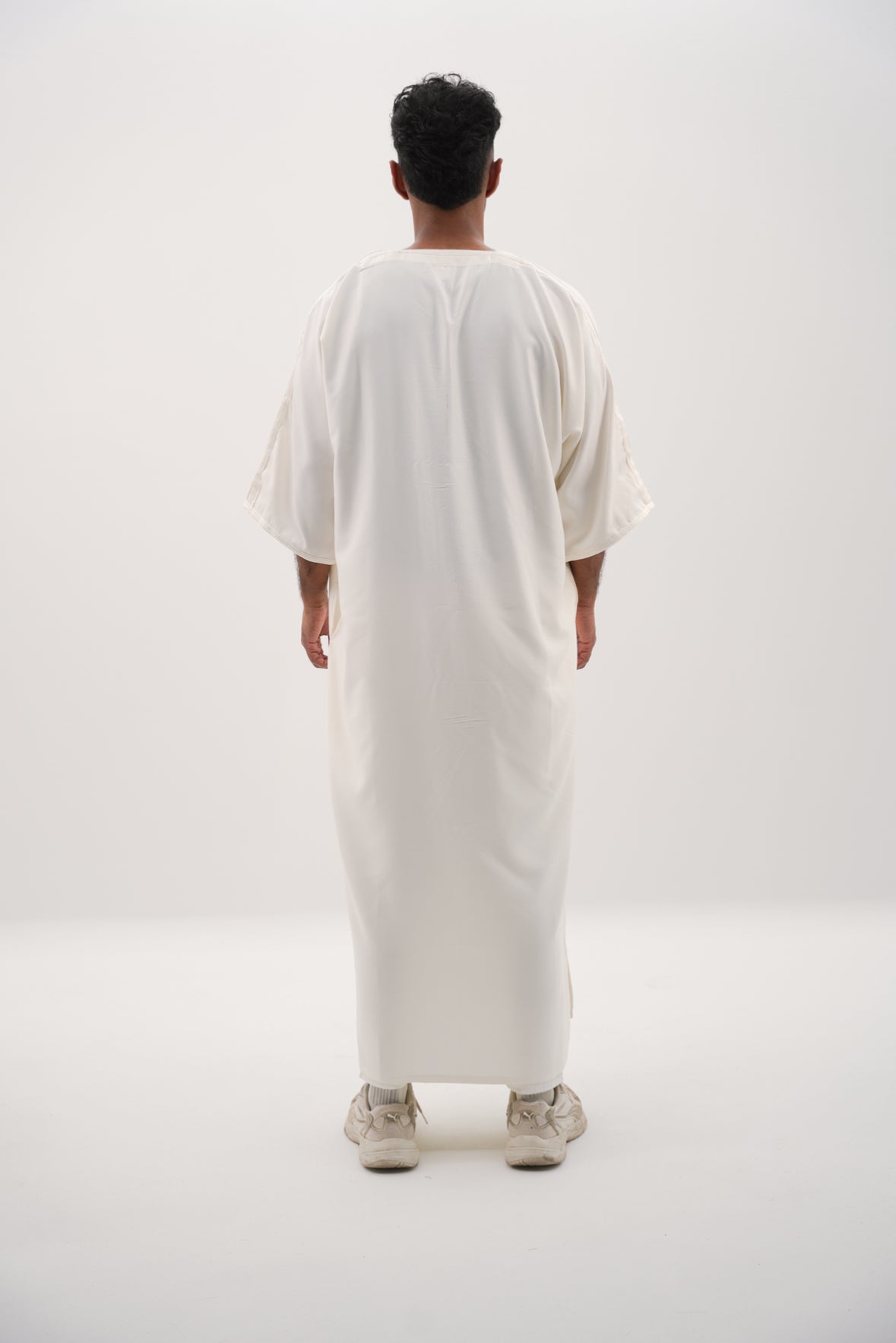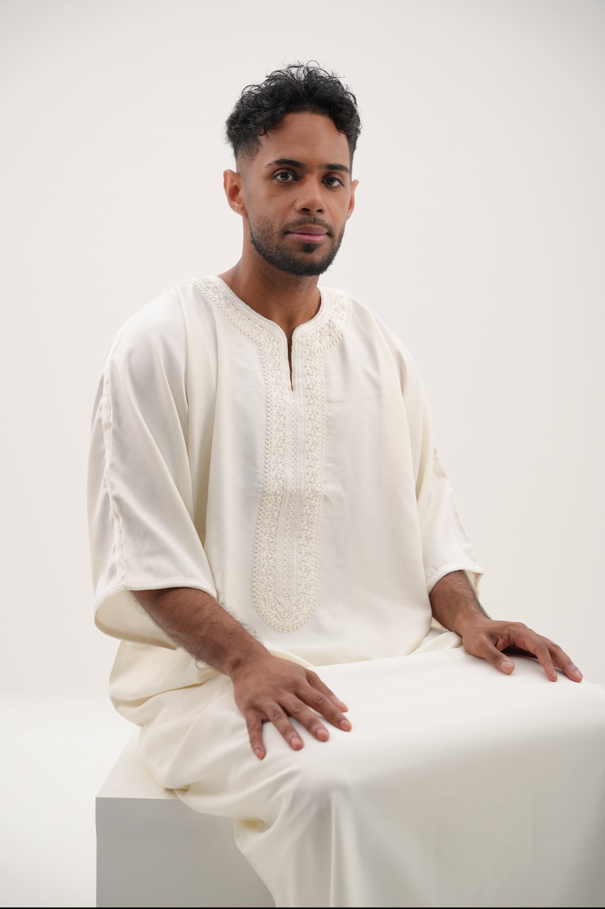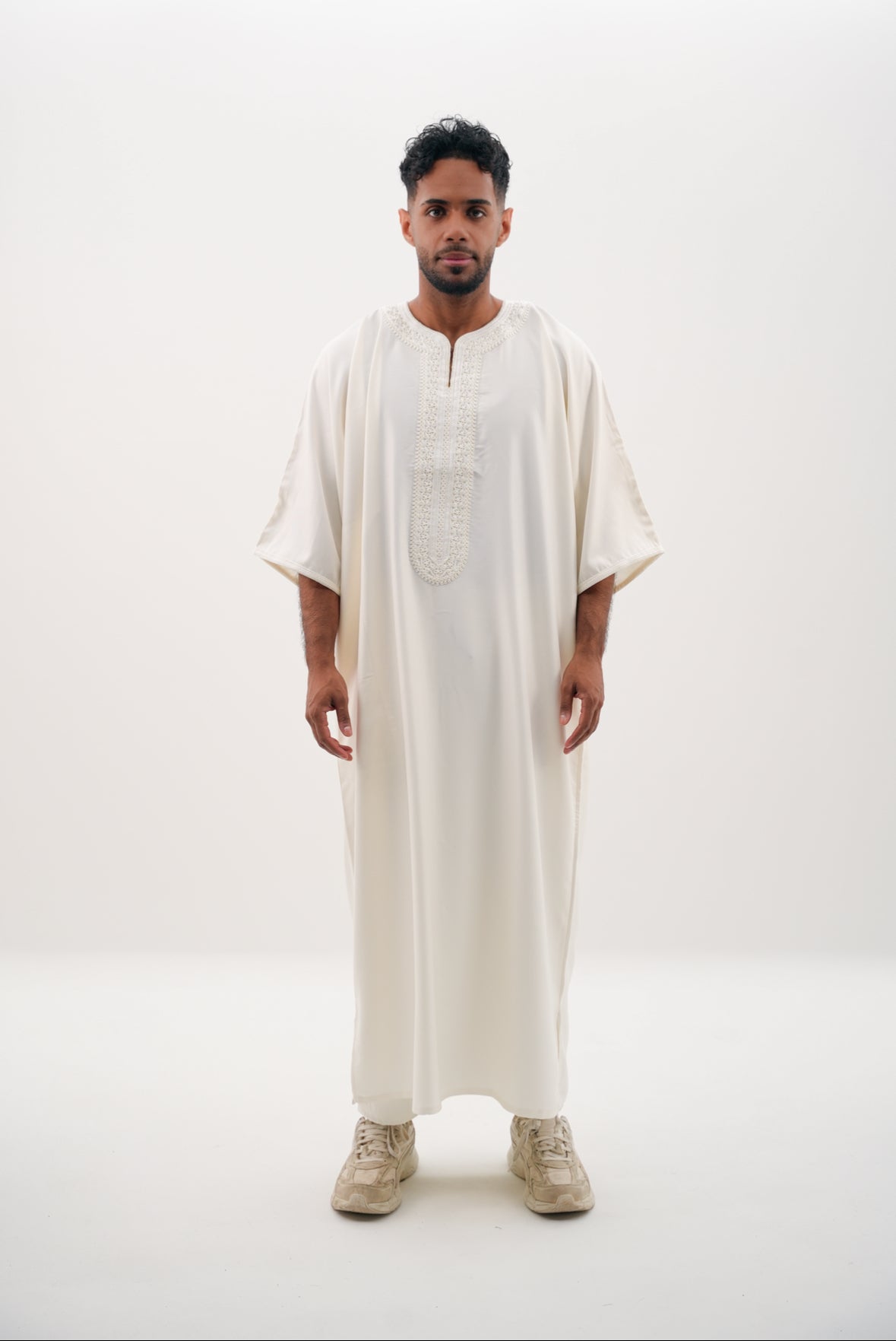 Erleben Sie die perfekte Kombination aus Tradition und modernem Stil mit unserer GANDOURA in Cremeweiß.
