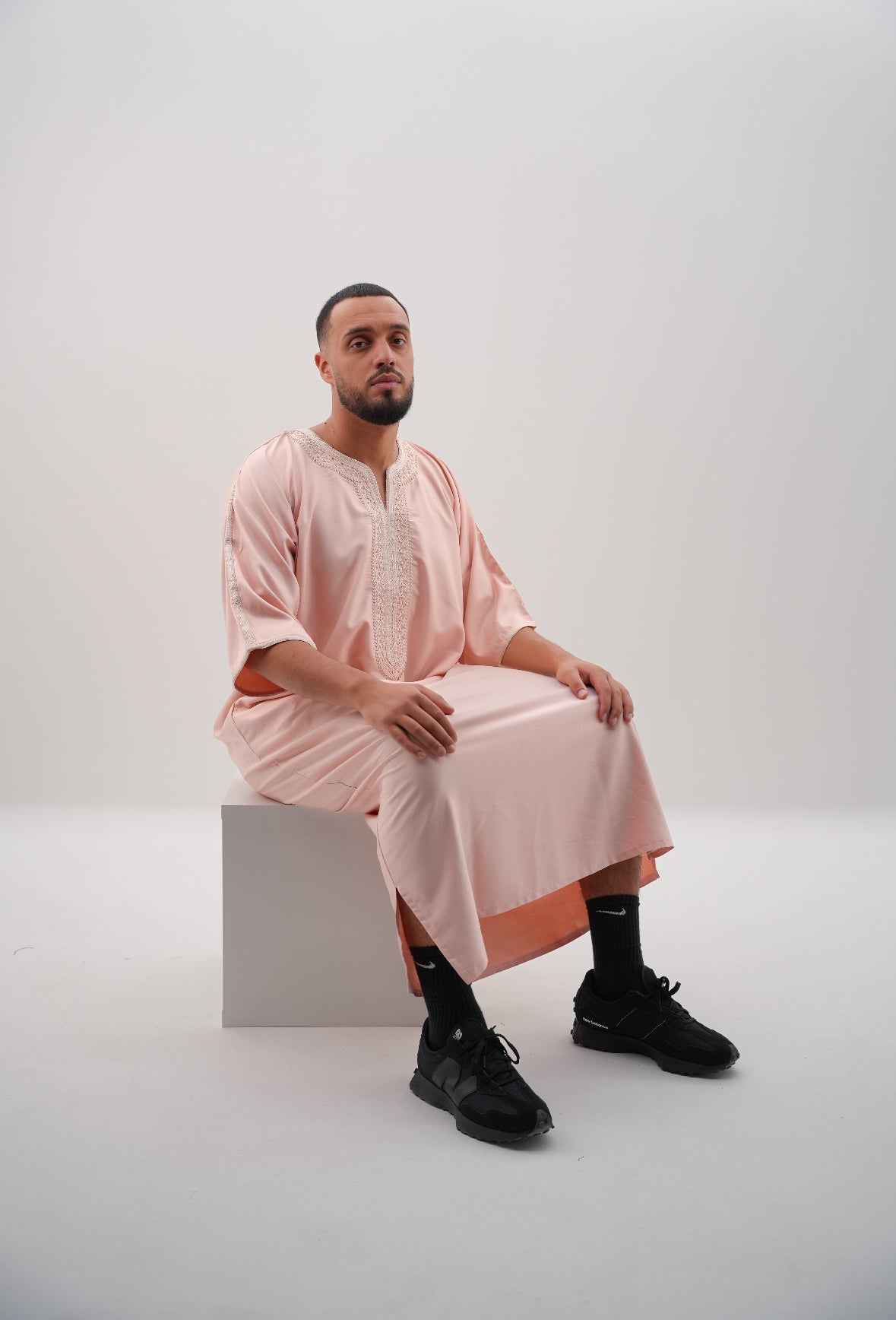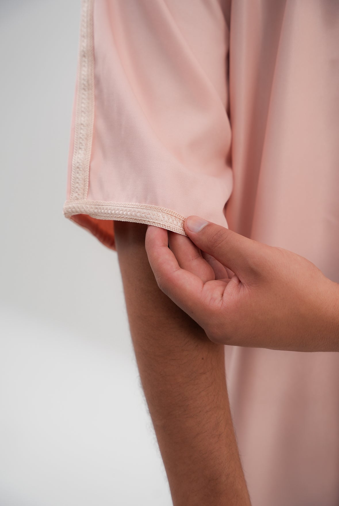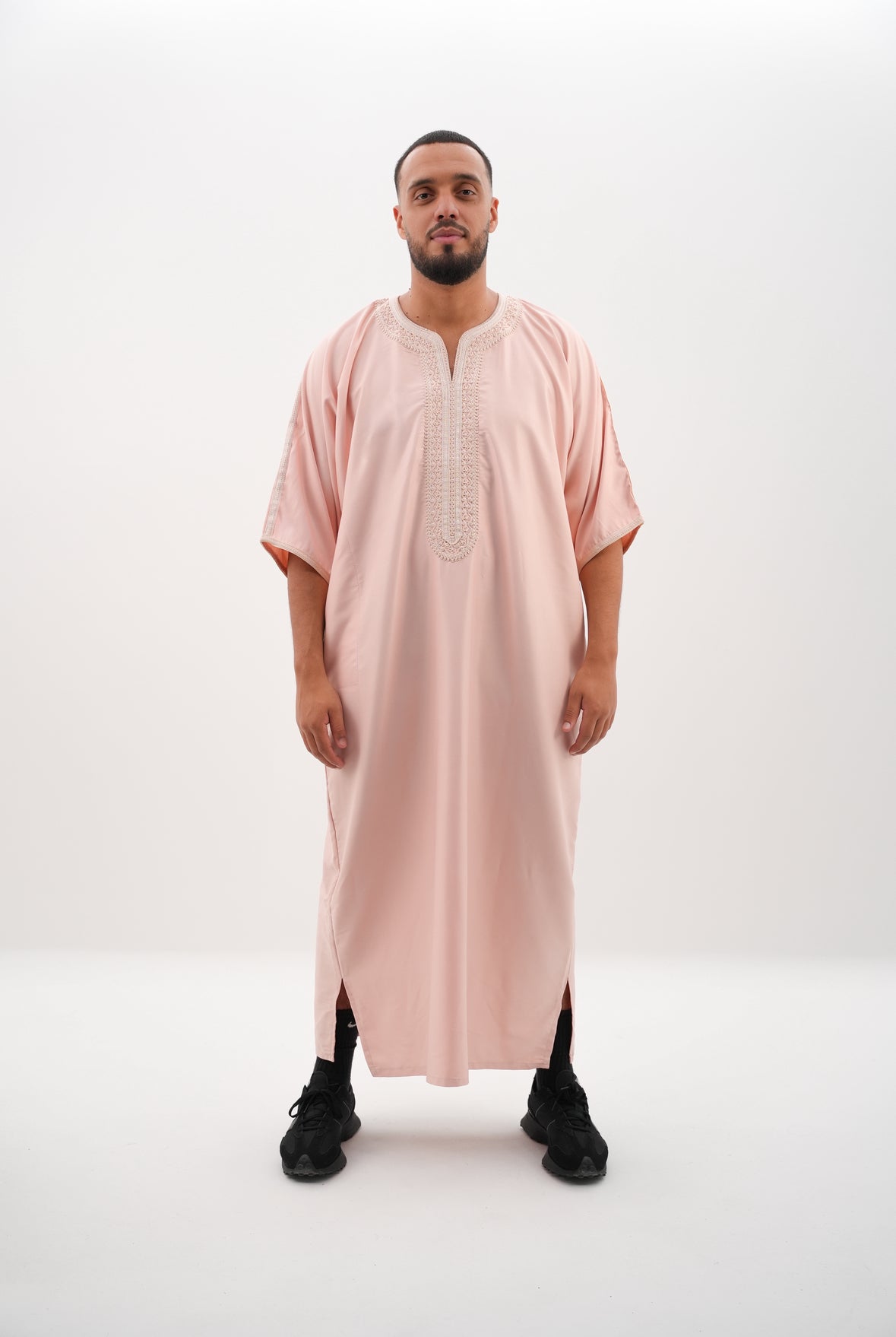 Diese wunderschöne Gandoura in der Farbe Rosa aus unserer Sommer Kollektion 2024 wurde traditionell in Marokko handgefertigt. Die Verarbeitung an der gesamten Gandoura ist sehr fein und qualitativ. Die Länge des Gewands geht bis zu den Knöcheln und erfüllt damit auch die Sunnah. Die Gandoura sieht nicht nur wunderschön aus, sondern ist ebenfalls sehr angenehm zu tragen und fühlt sich gut auf der Haut an.