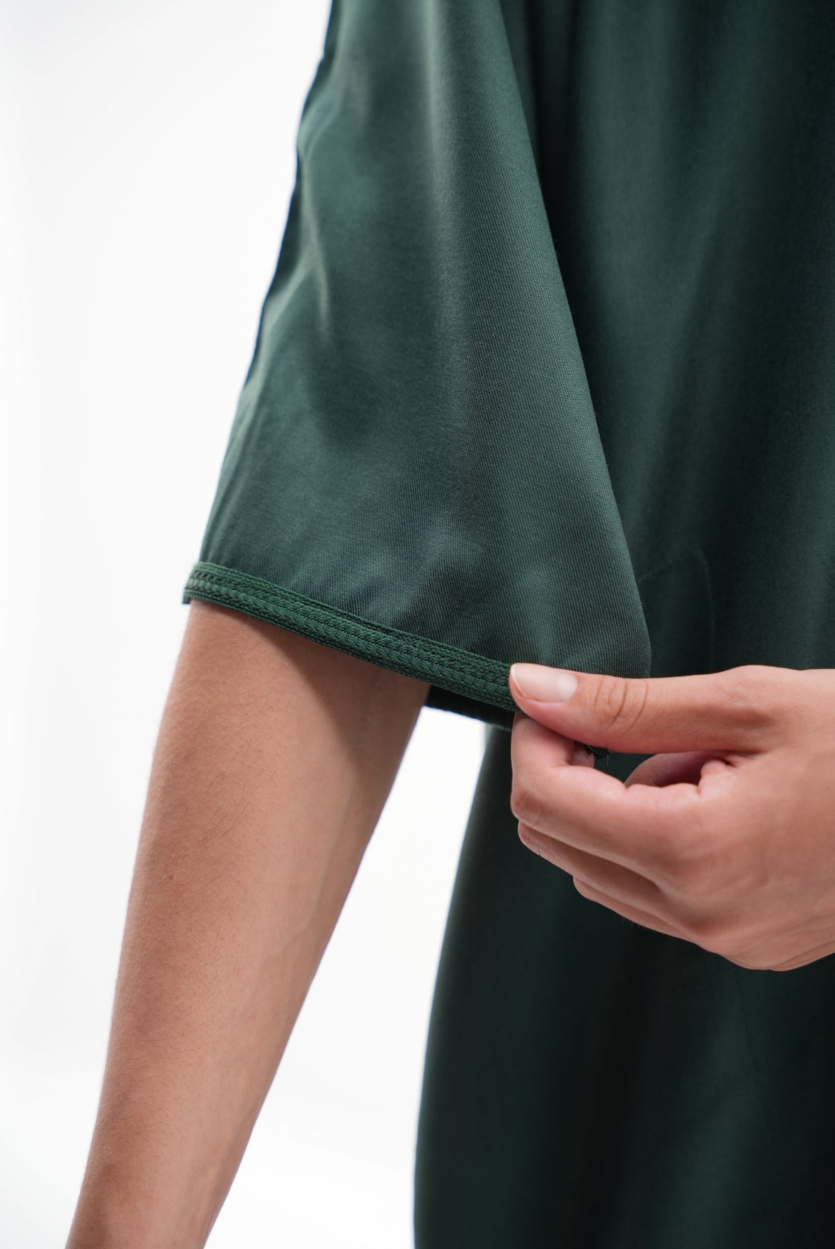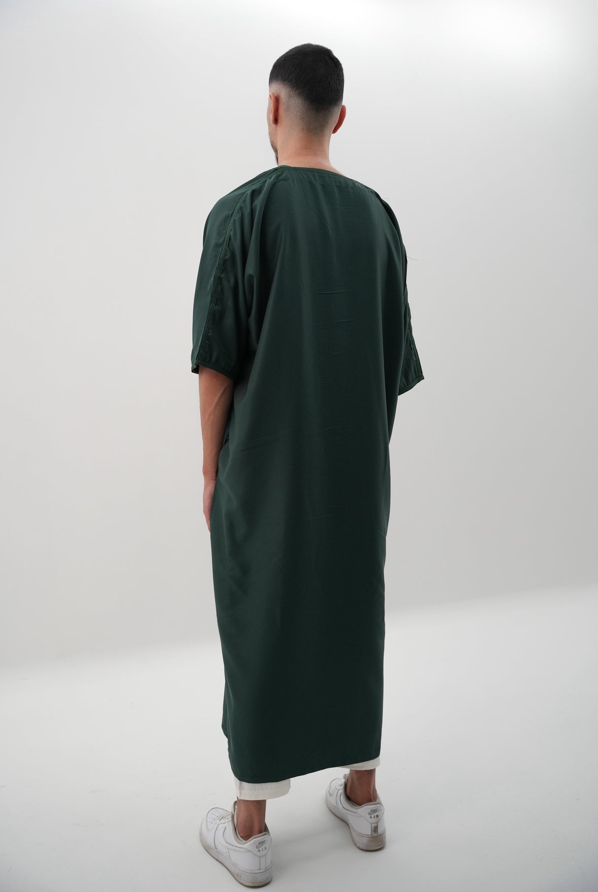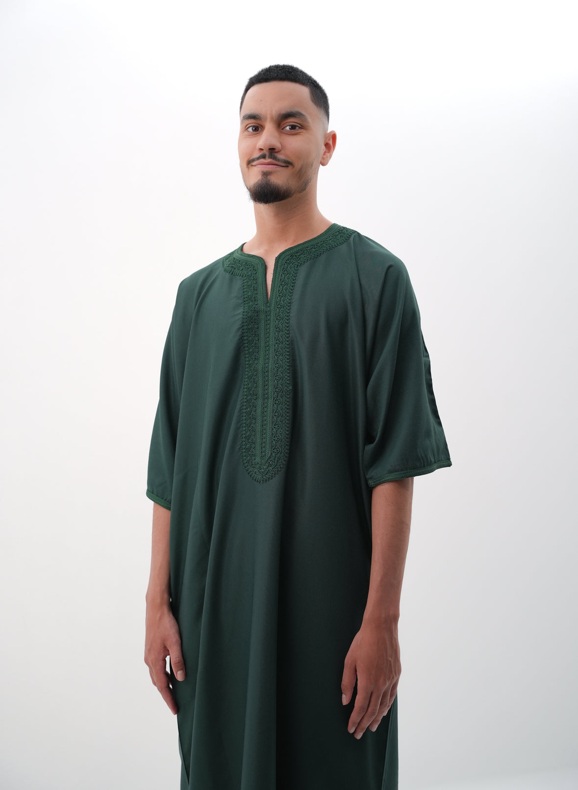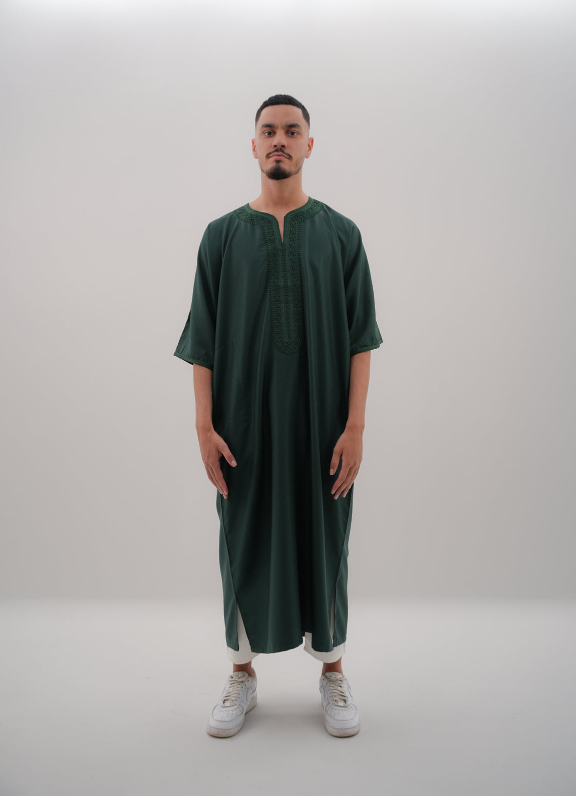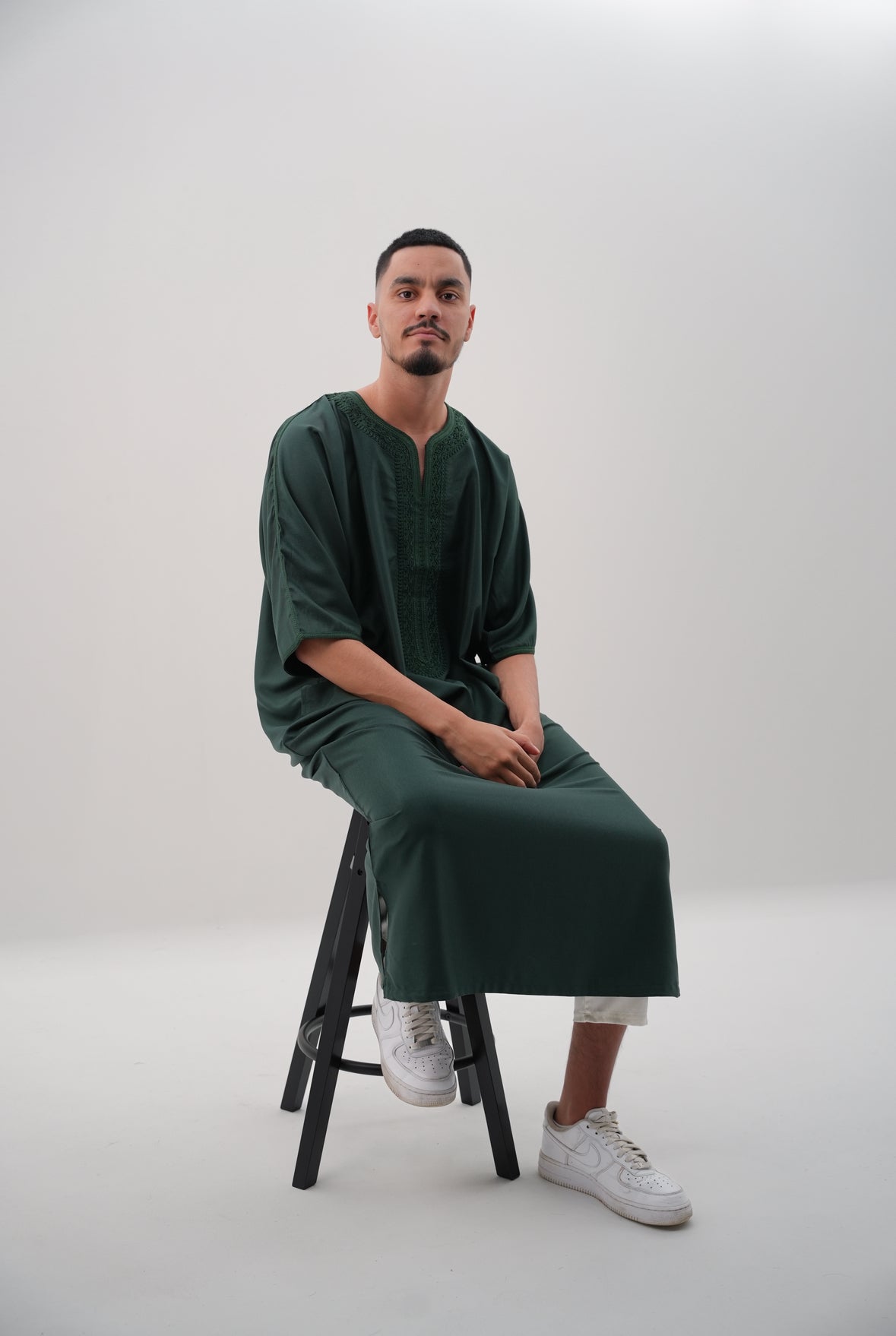 Entdecken Sie die warme Eleganz unserer GANDOURA in Tannengrün - die ideale Wahl für die kühlere Jahreszeit.